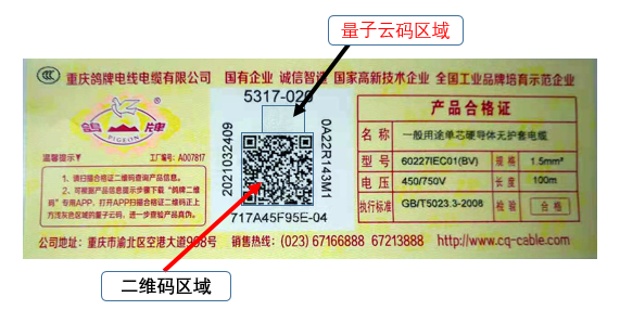 為保障您的權(quán)益,增強(qiáng)鴿牌公司電線產(chǎn)品的防偽和質(zhì)量追溯能力,我公司持續(xù)對(duì)電線產(chǎn)品的合格證及防偽系統(tǒng)進(jìn)行改進(jìn)升級(jí)。2020年1月啟用了鴿牌電線第三代防偽系統(tǒng),電線產(chǎn)品采用‘二維碼+量子云碼’合格證,淘汰采用電線產(chǎn)品的電話電碼防偽查詢系統(tǒng)。